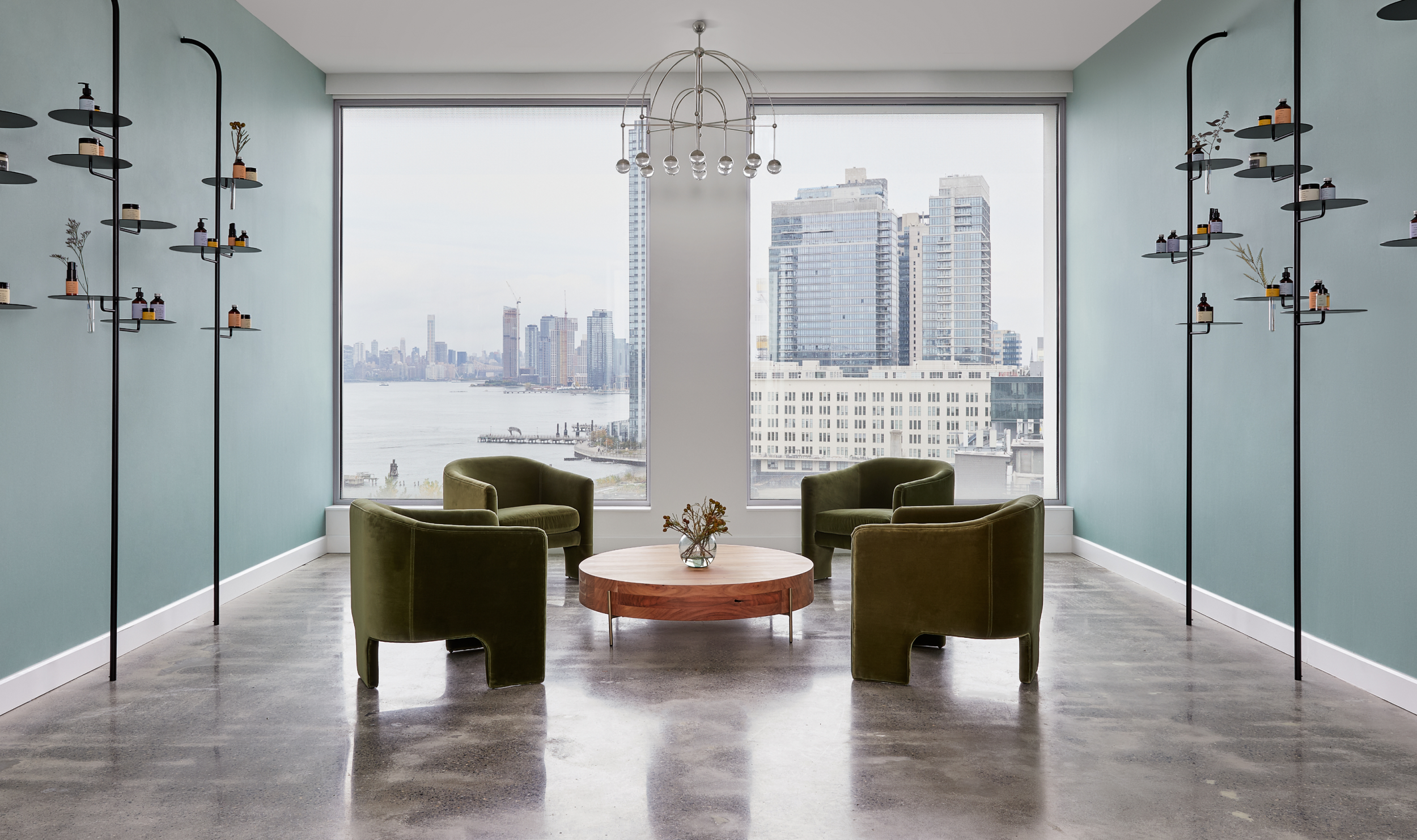 Prose has a very strong brand aesthetic, which we wanted to bring into the space. We infused all of the spaces with the brand colors and imagery, and brought in custom elements to highlight the bespoke nature of their product, using imagery from Prose's past marketing campaigns throughout the space.
